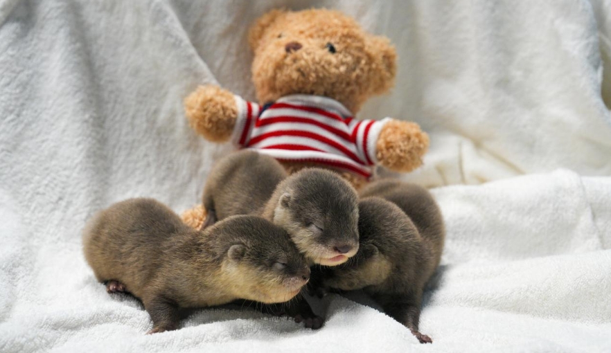 保育员告诉记者,三胞胎是在9月13日出生的,老大和老三是雌性,老二是雄性,刚出生时三胞胎非常柔弱,全身包裹着乳白色的胎毛,还没有睁开眼睛,需要在比较黑暗安静的环境中照顾,水獭妈妈也非常溺爱幼崽,24小时守护在幼崽身边。幼崽们的声音非常响亮,饿的时候会嘤嘤叫着喊妈妈喂奶,由于水獭妈妈初次生育奶水不足,保育员会用羊奶粉和鸡肉泥辅助喂养,每隔2小时喂食一次,一天需要喂4次,同时保育员也会用牛肉、多春鱼、虾仁等做成营养餐为水獭妈妈补充营养。
