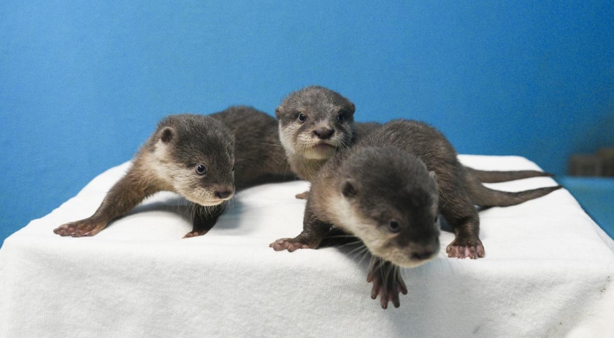 10月22日,幼崽们在出生的39天后睁开了眼睛,新奇的体验让它们迫不及待地探索着周围的世界。三胞胎中,大姐性格较为温柔,平时主要待在妈妈和兄妹身边;二弟非常好动,四只小脚丫像装了马达一样,吃饭的时候也在扑腾;三妹也很活泼,喜欢跟着姐姐哥哥一起转悠。目前小水獭们还不会游泳,大约在出生后的90天左右,就可以跟着爸爸妈妈一起学游泳啦。