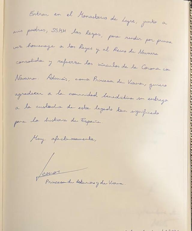 莱昂诺尔和父母还前往了当地知名的莱雷修道院,并在荣誉簿上签名、留言。