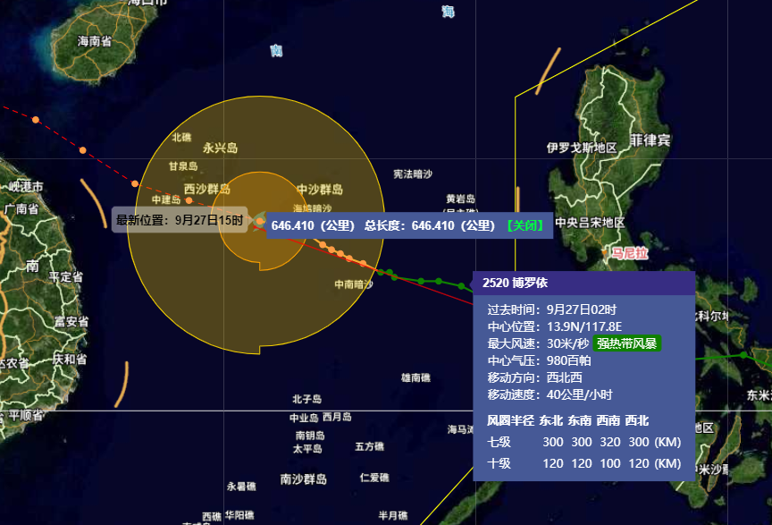 今年第20号台风“博罗依”是个急性子,横穿菲律宾、减弱为强热带风暴后,就一个猛子扎进南海,开启了它的“飞驰”之路。从昨天进入我国24小时警戒线后到今天下午,16个小时狂奔了约650公里,最快时跑到了40公里/小时!
