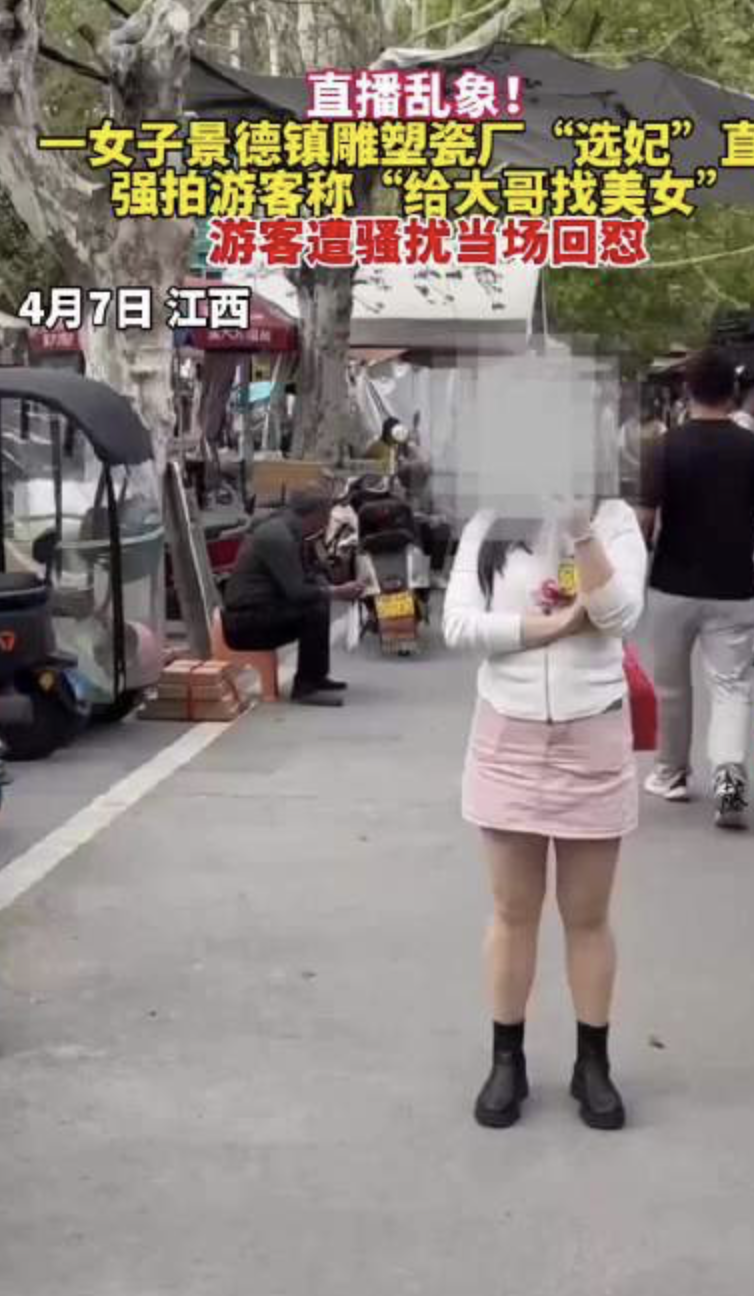 这种镜头的侵犯性,在景区更为猖獗。2025年8月,有网友反映,自己在景德镇古窑民俗博览区游玩时,发现那些拍照打卡点,早已被各类直播镜头所占据,每一个想要拍照打卡的人,都会被迫走进直播间,将自己的个人行踪与状态,暴露于无数陌生人面前。