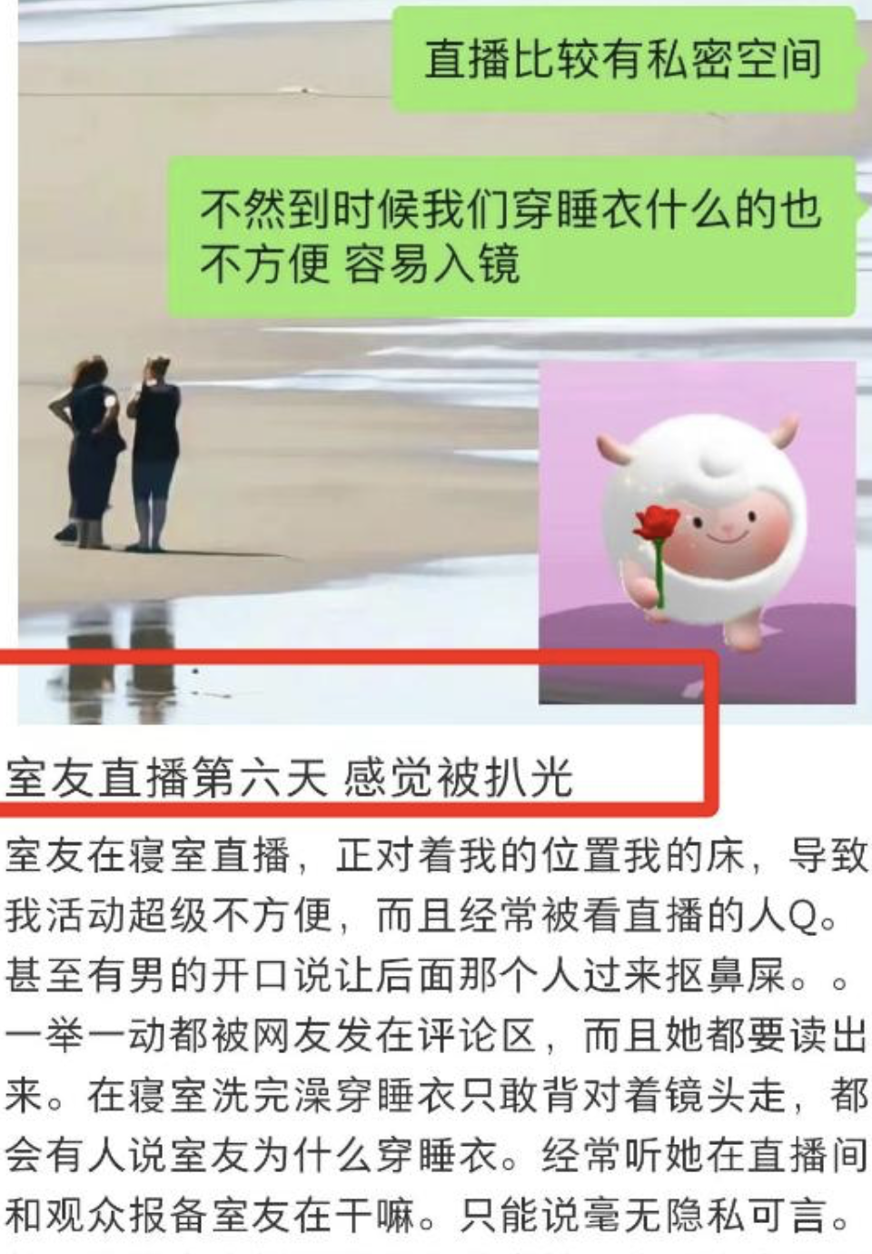 这类帖子一经发出,往往会引发大量共鸣,评论区纷纷抱怨“室友凌晨一点还在直播打游戏连麦”“没经过我同意就把我拍进镜头里”“提醒她反而被骂多管闲事”……