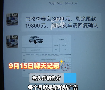 更崩溃的是,李先生发现车辆合格证是假的,属于三无产品。“我连驾照都没有,要被坑死了!”李先生花的是带老伴看病的救命钱,如今却买了个不能上路的摆设。夫妻俩焦急万分,哭着要求退款。