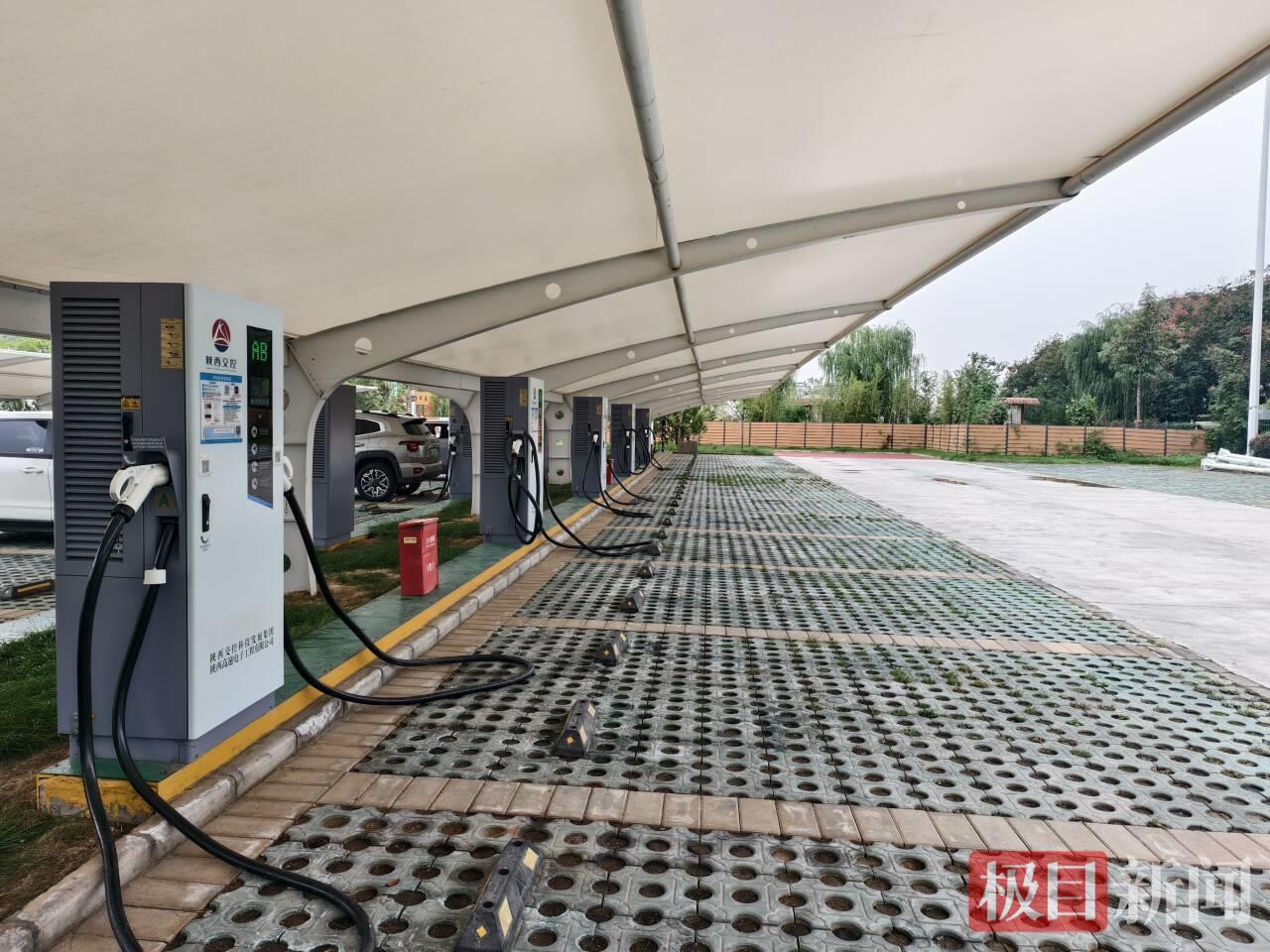 10月2日,极目新闻记者走访了西安两处高速公路服务区充电站,均无车辆排队等待充电的情况,空充电车位较多。