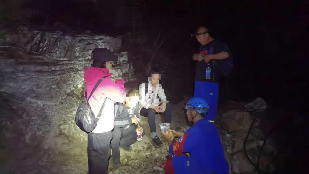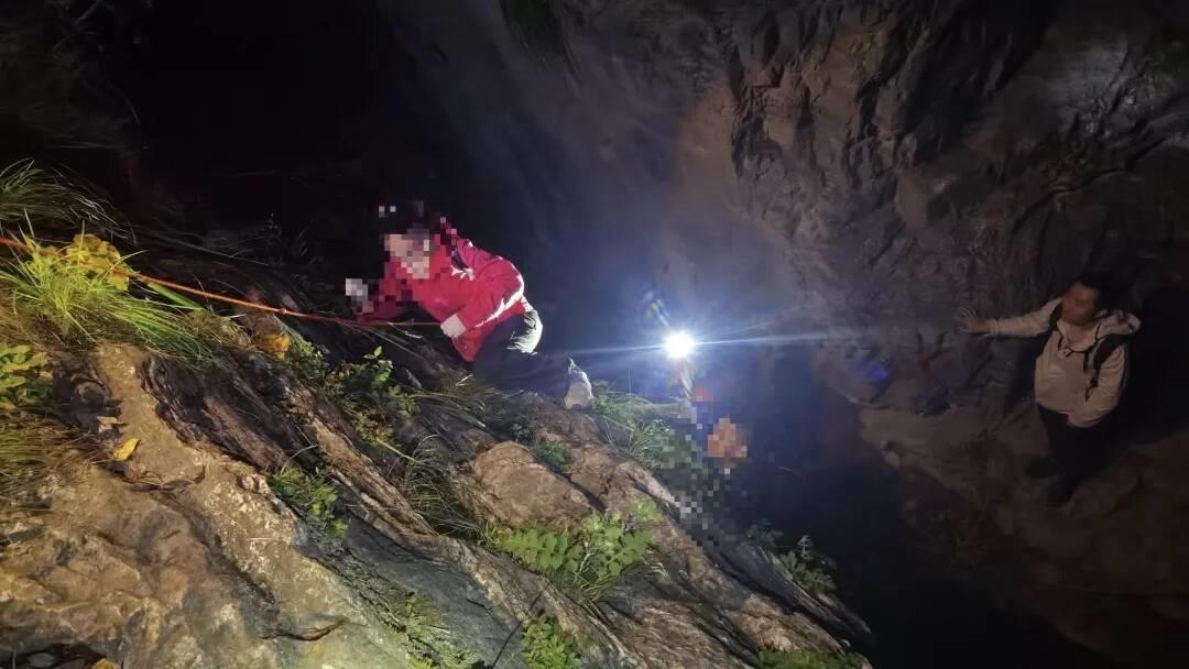 当天19时58分,救援队抵达山下,随即与被困者联络。22时,救援队找到3名被困者,当时3人在一处3米高的断崖下,身体状况良好,随后救援队用绳子把被困者转移到断崖上。