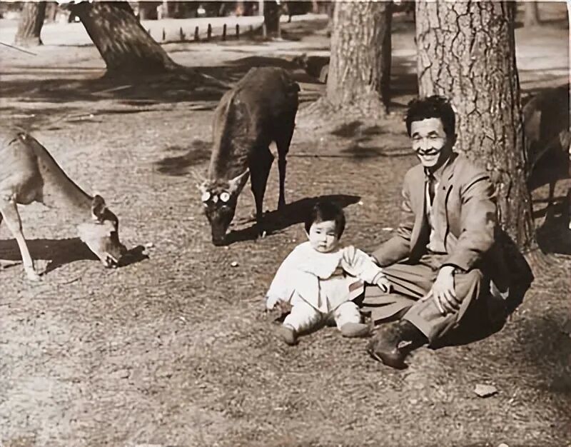 ◆高市早苗一岁的时候,与父亲在奈良公园。