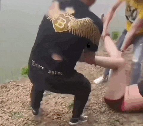 新娘被人扑倒在地,几个男人叠罗汉一样压在身上;