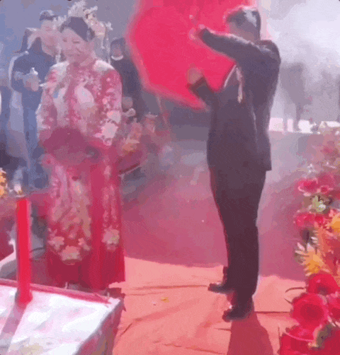 只看画面,没人知道是结婚的喜庆时刻,还以为是古代的酷刑现场。