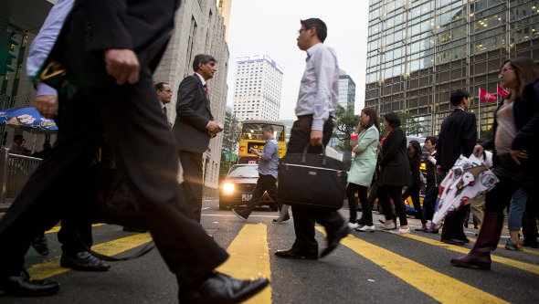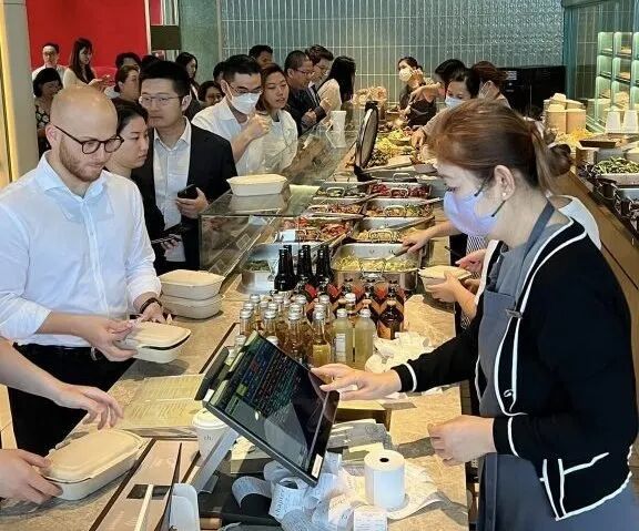 从购物中心到街边小店,只要有两餸饭店,就可以看到那些穿着西装或者套装的白领们排队购买午饭。