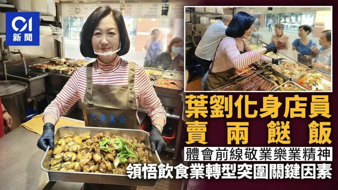 而立法会议员叶刘淑仪,更是亲自在两餸饭店担任店员,体验前线工作,为市民服务。