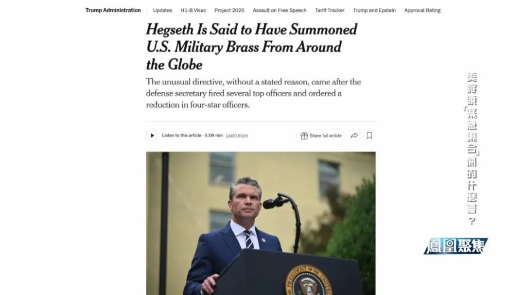 不管身在千万里之外,不管有何要务在身,分布在全球各地的八百多名美军高级将领都接到命令限期赶回美国开会。美国这场史无前例的军中紧急会议有何玄机?战争部长赫格塞思是在提振美军的战斗力还是相反?