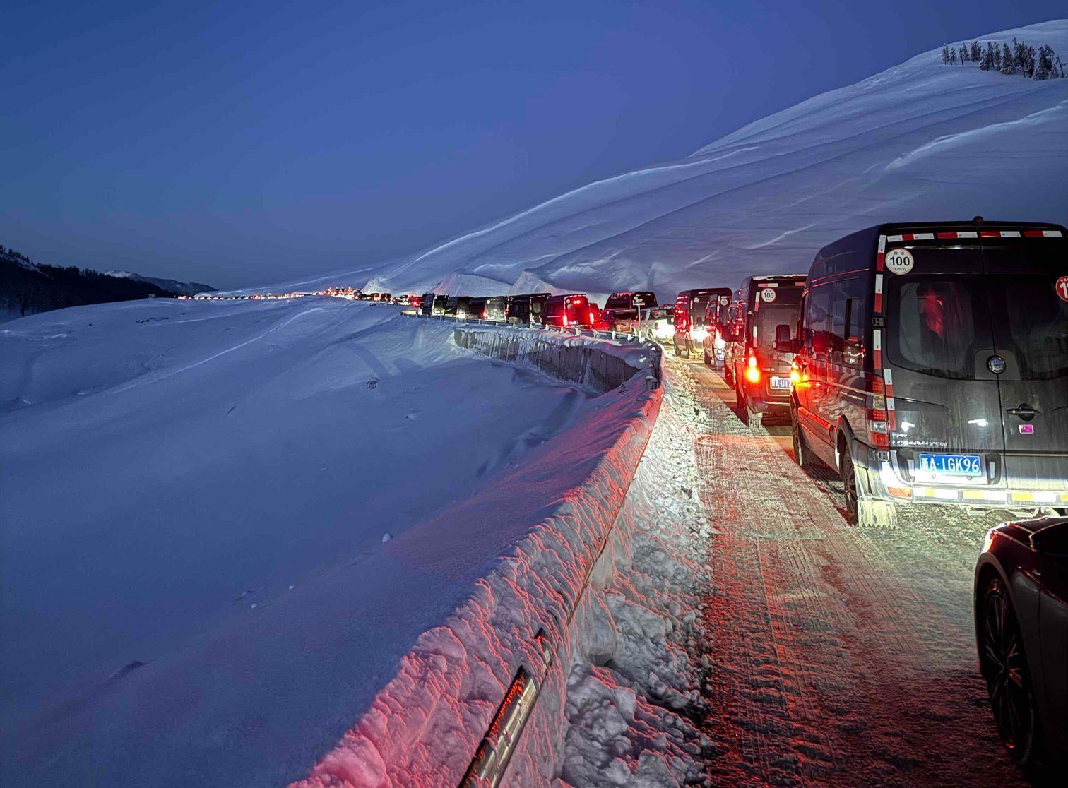 10月5日13时30分,陈女士和同行人员从禾木游客中心出发前往布尔津。15时左右,车辆行驶了二十多公里后便开始拥堵,直至6日上午11时左右才恢复畅通。陈女士告诉记者,“从禾木游客中心出发时天气很好,到晚上7点多开始下雪,路上积雪厚度达20至30厘米,气温降至零下十几度。”