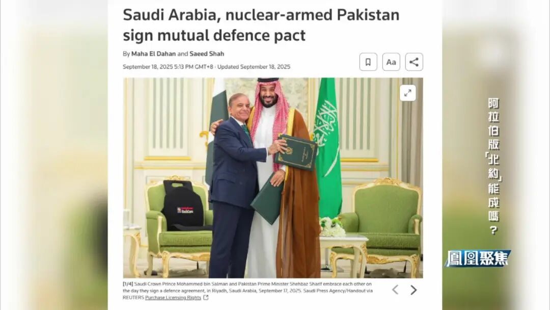 历史、政治、经济、军事、教派等种种因素让埃及提出的“阿拉伯版北约”构想难以为继。但区域安全问题却是实实在在摆在眼前,退出埃及主导的联盟计划,沙特迅速另辟蹊径。2025年9月17日,沙特与巴基斯坦在利雅得签署《共同战略防御协议》。值得注意的是,该协议亦仿照北约第五条款,明确规定“对任一缔约国的攻击即视为对两国的侵略”,双方将实施联合防御。巴基斯坦作为拥有核武器的国家,具备丰富实战经验;沙特则提供资金支持,二者形成军事与财力的互补格局。协议采用开放架构,欢迎其他国家加入,被解读为沙特打造的替代安全框架的尝试。