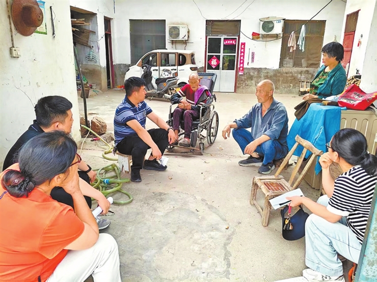 舞钢市尚店镇大黄村驻村第一书记张亚东走访退役老兵五保户。