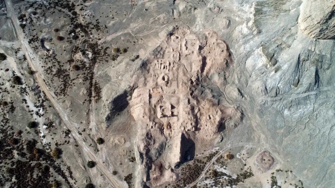 他们还清理出了包括内城北城门墩台、主干道、夯土平台、房屋居址等在内的大量遗迹。在此基础上,遗址的形制呈现出更为清晰的轮廓,基本可以确定为四重城,从内向外分别是高台城、内城、外城、大外城:高台城雄踞于山岩之上,居高临下;内城和外城位于山下平地,城垣以西北—东南走向的山体为轴,如双臂一般拱卫着高台城与内城的左右两侧;大外城环绕外城,墙垣随形就势,所经之处既有陡峭山岭,也有缓坡平地。这四重城的城墙在剖面上也显示出了许多不同之处,有的地方是规整的土坯砖,有的地方是不规整的土坯,有的地方直接是分层的夯土,无疑说明其营筑并非一次完成,而是不同时段逐步建设的。