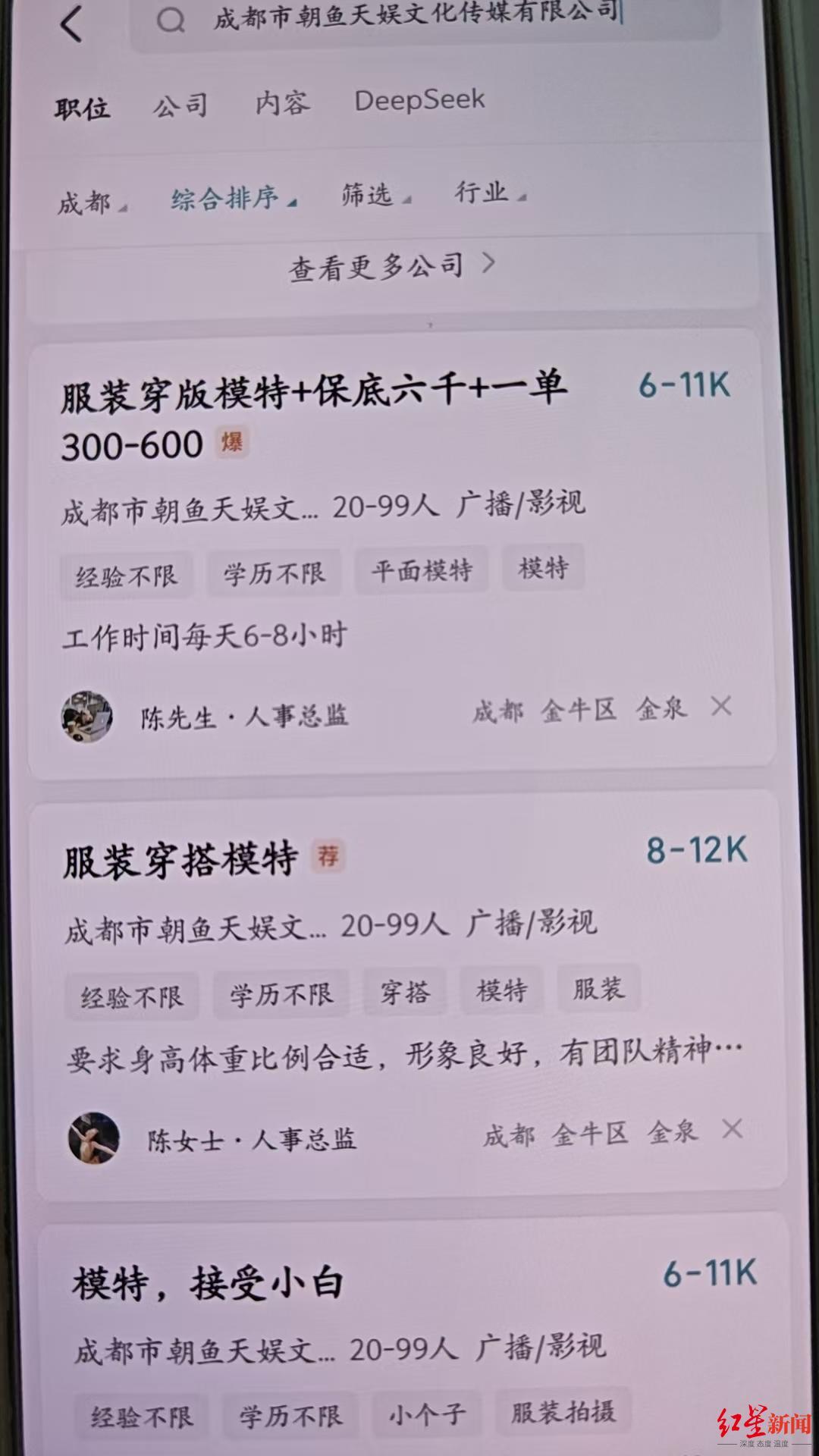近日,多位年轻女性向红星新闻记者反映,成都朝鱼天娱文化传媒有限公司(以下简称:朝鱼公司)以高薪诱饵吸引年轻女性从事主播工作,签约后以不对等合同条款强制主播进行违规直播,并利用合同设置高额违约金限制离职。