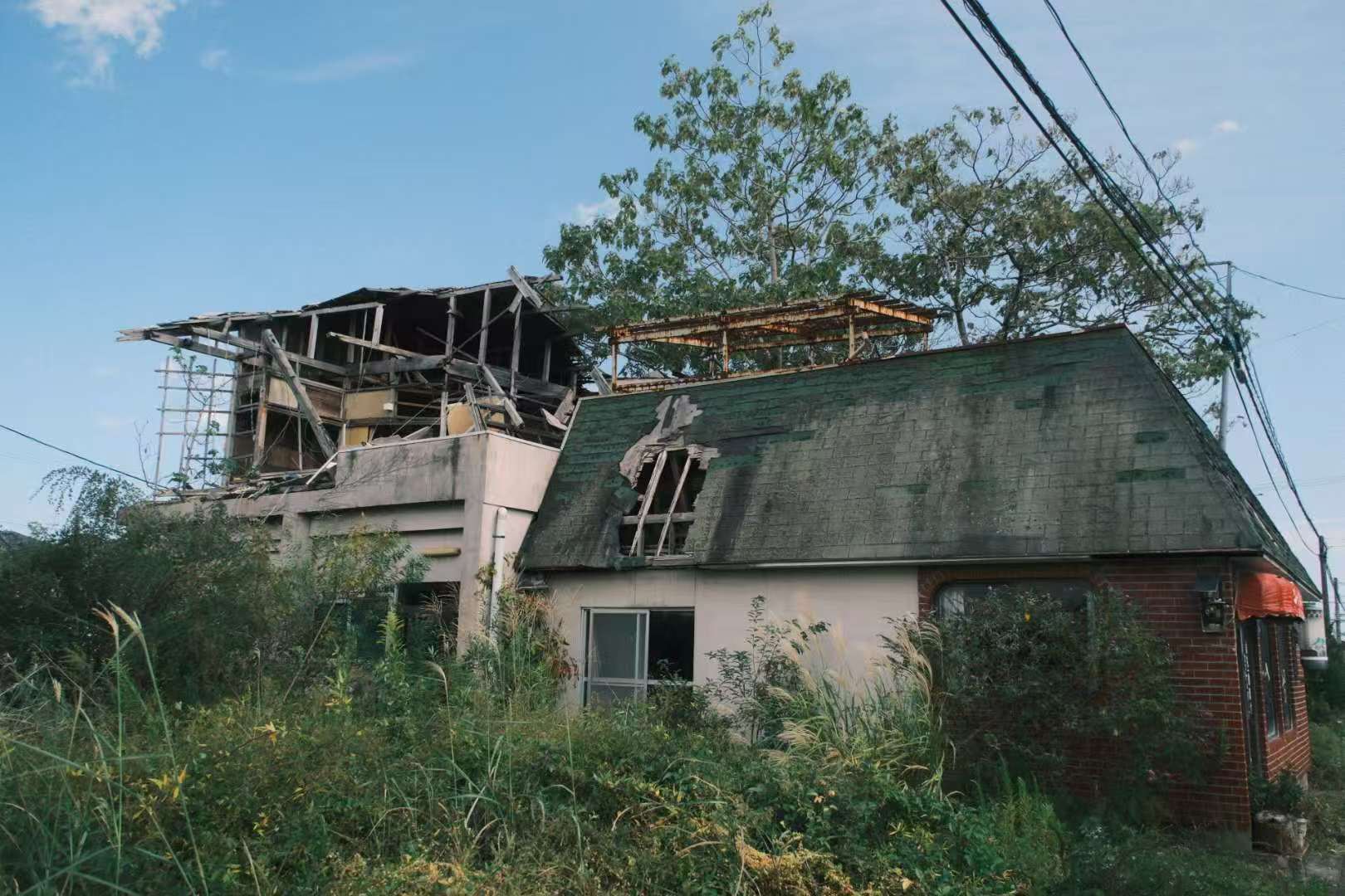 很快,大熊町向我露出了它更“真实”的面目。尽管道路情况不算糟糕,至少和我国大多数的乡镇道路相当,但有些过于空旷的民居和时不时出现的褪色路牌,以及零星散布的荒芜废墟,都在告诉我这并不是一个普通的日本村镇,而是受到“311大地震”和福岛核问题影响最严重的地区。