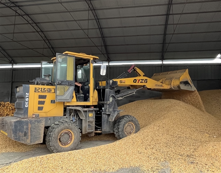 满载玉米的农用车开上地磅,计量设备发出“本次称重3796公斤,请下磅”的语音。车辆转个弯开进仓库,准备卸粮。