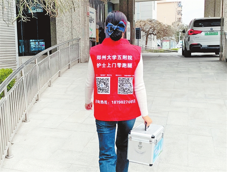 ④郑大五附院网约护士上门服务模式日渐常规化。 安艳丽 摄