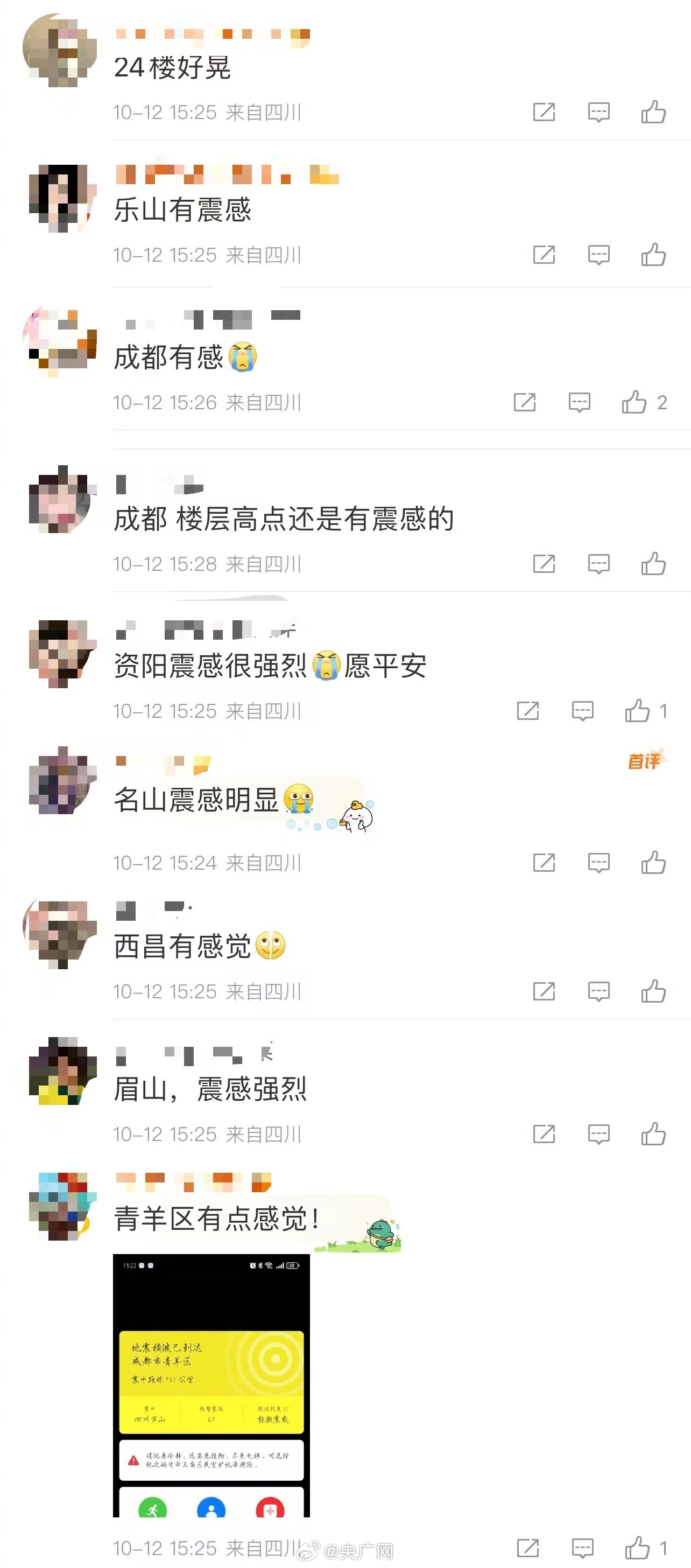 中国地震台网正式测定:10月12日15时21分在四川雅安市芦山县(北纬30.48度,东经103.09度)发生4.7级地震,震源深度10千米。网友:成都有震感!