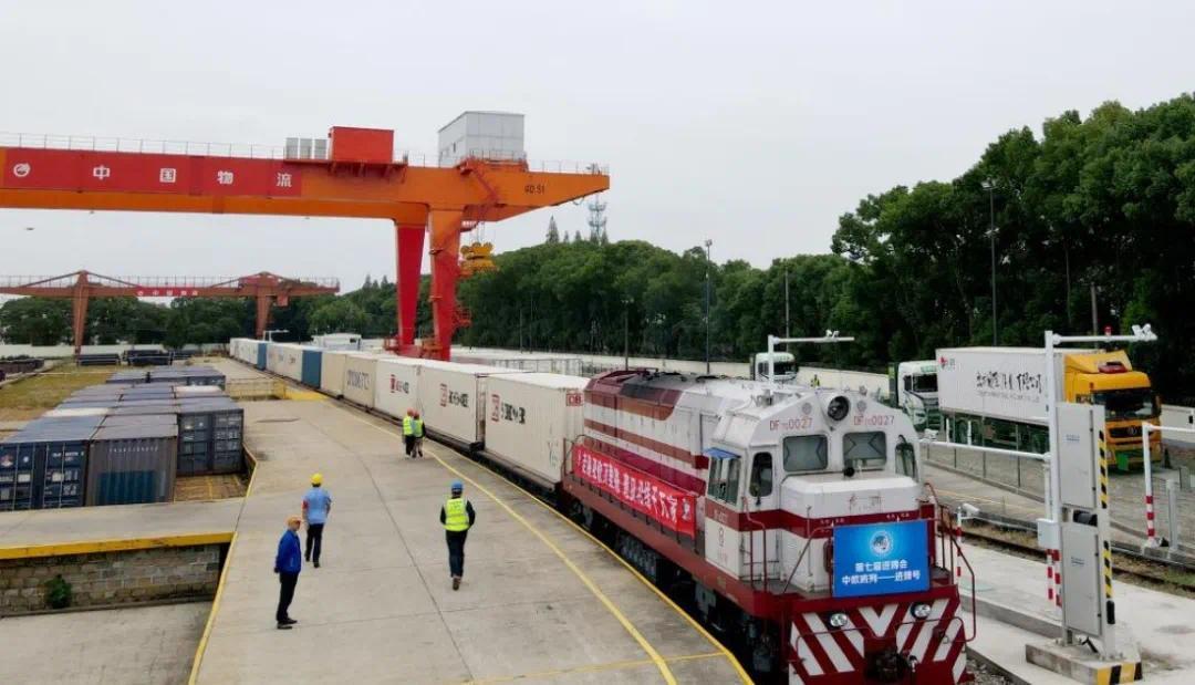 ▎2024年10月20日,首趟“中欧班列——进博号”抵沪。图源:新华社
