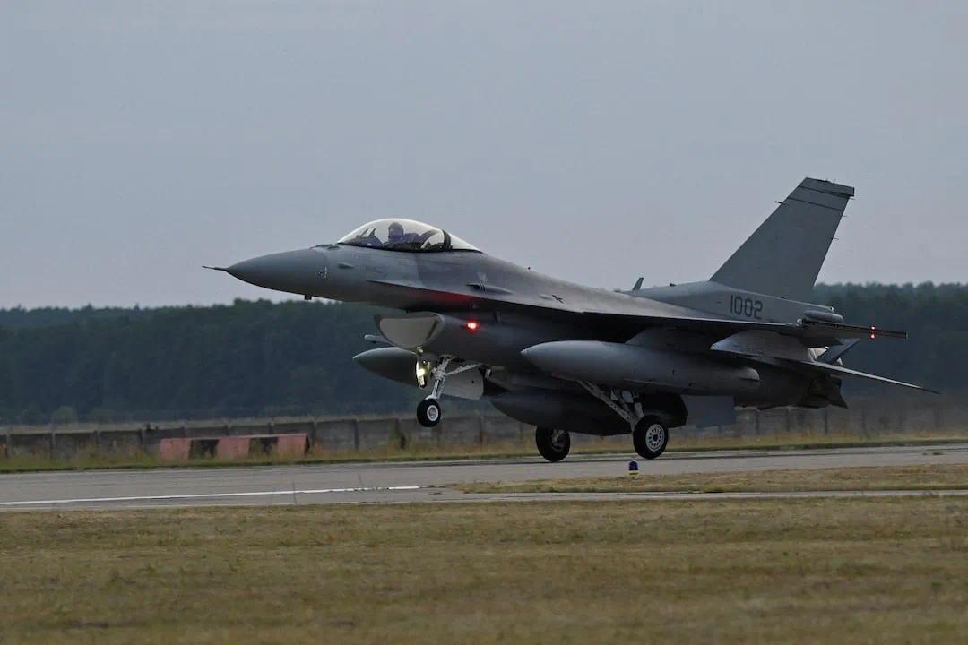 ▎2024年7月22日,一架F-16战斗机降落在斯洛伐克参与军售交接仪式,2024年美国对外军售达到创纪录的3187亿美元。图源:路透社