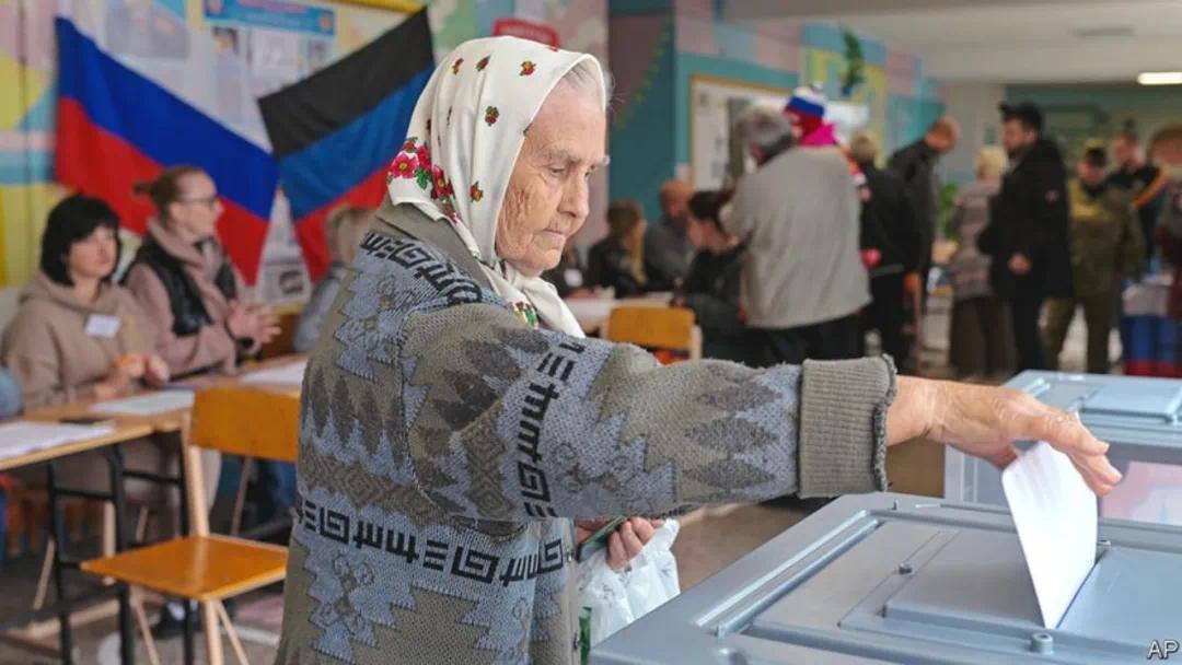 ▎2022年9月,俄罗斯在乌克兰东部的四个州举行入俄公投。图源:美联社