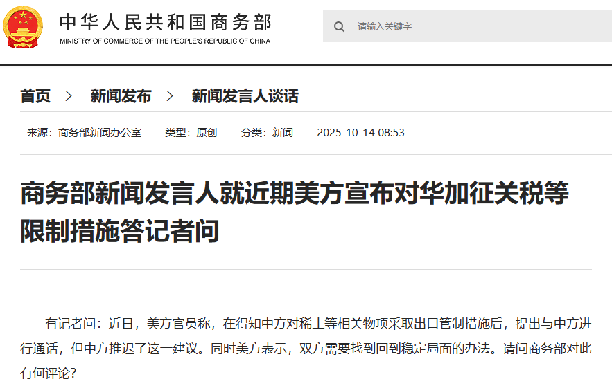 10月14日,商务部新闻发言人就近期美方宣布对华加征关税等限制措施答记者问。