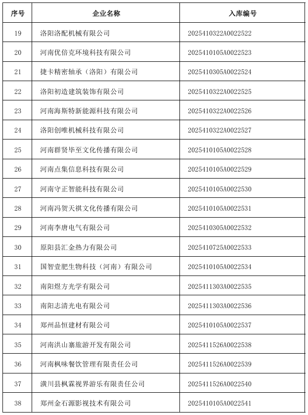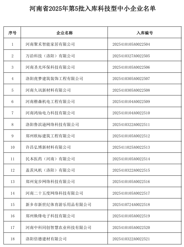 【大河财立方消息】 10月15日,河南省科技厅公布河南省2025年第五批入库科技型中小企业名单。