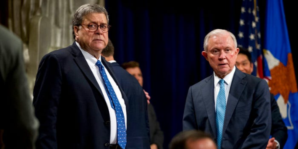 特朗普第一任期的司法部长威廉·巴尔(左)和杰夫·塞申斯(右)。图源:法新社