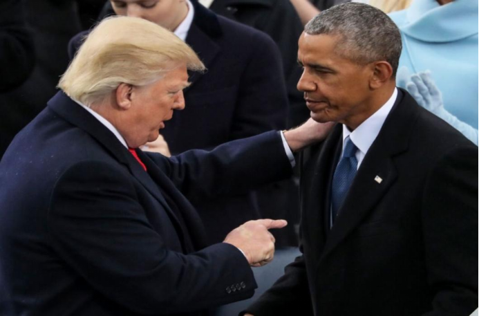 总统特朗普与民主党籍前总统巴拉克·奥巴马