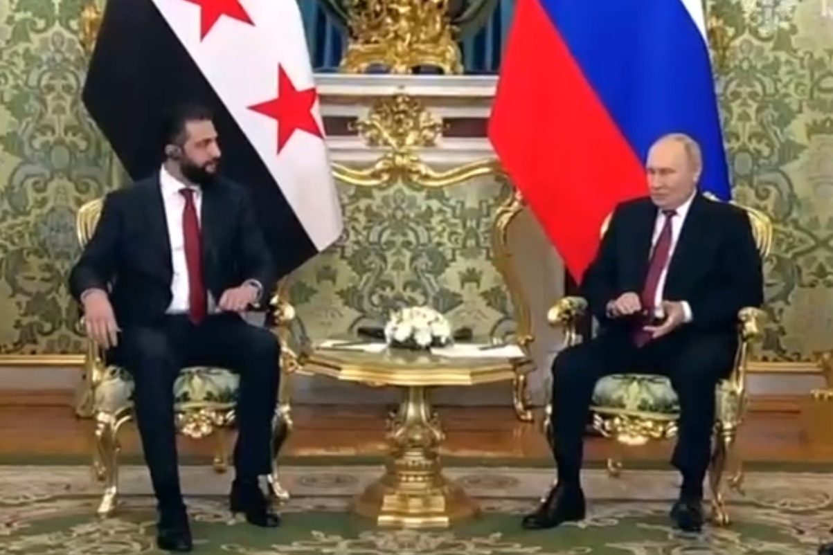 当地时间10月15日,俄罗斯总统普京与到访的叙利亚政权领导人艾哈迈德·沙拉在克里姆林宫举行会谈。双方讨论俄叙双方在政治、经贸、人文等领域关系的现状和发展前景以及近期的中东局势。
