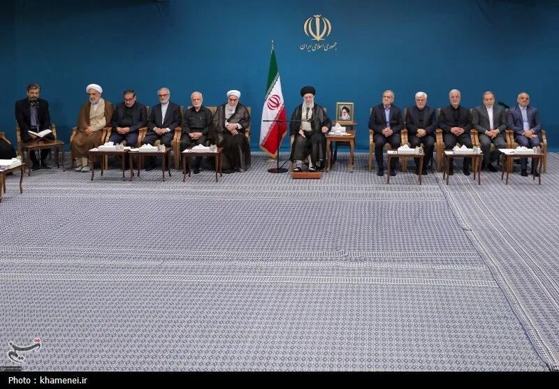 伊朗最高领袖哈梅内伊同伊朗总统佩泽希齐扬及第14届政府代表会晤。(图源:伊朗最高领袖办公室)