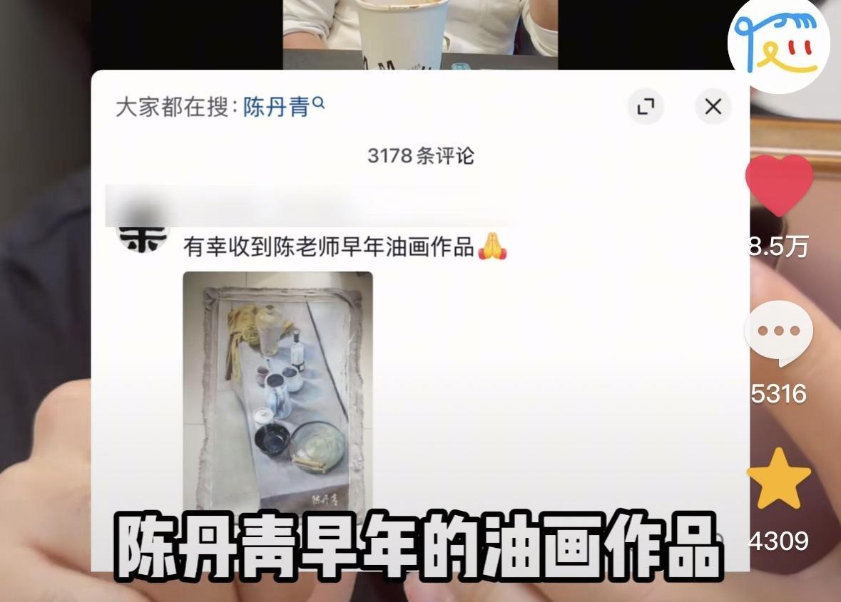 买家:我在陈丹青老师的抖音账号下面留言了,原话就是有幸收藏陈丹青老师早期作品。就这么简单一行字,然后很多人留言,有人看好有人不看好,上千人点赞,留言火了。博主(“想想工作室”)看到了这个事情。