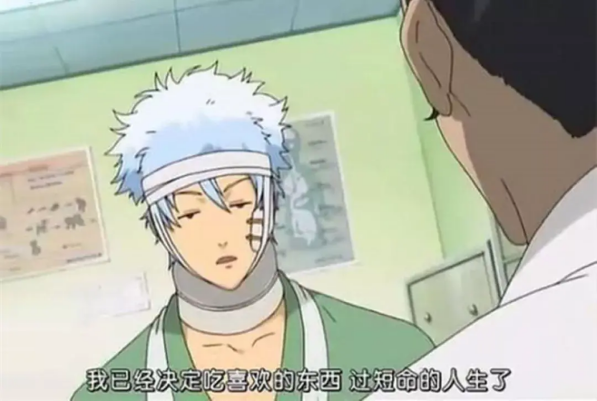 实际上,更有可能收获的是短暂的「健康人生」,然后提早开始承受病痛折磨……图片来源:《银魂》