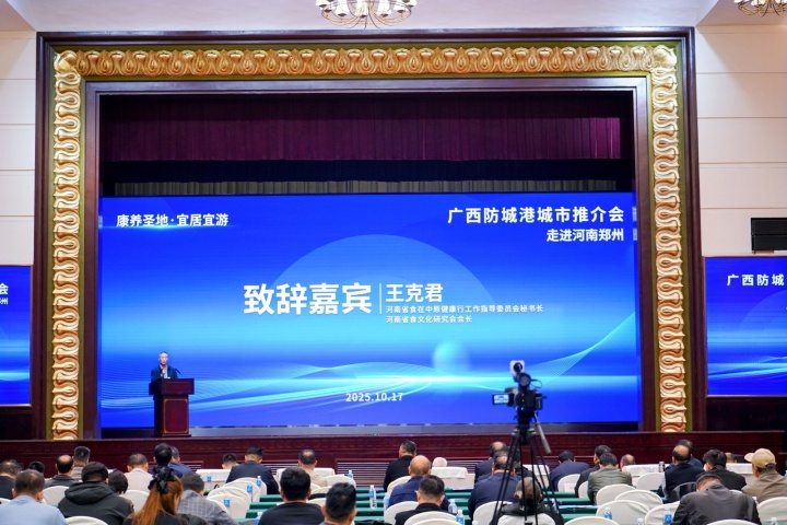 为进一步擦亮 “边海旅游城,宜居长寿市” 城市品牌,深化防城港市与河南省郑州市在文旅、康养、旅居、房地产等领域的合作交流,2025 年 10 月 17 日下午 14:30,“走进河南 - 郑州” 2025 年防城港市城市推介会在河南省郑州市黄河迎宾馆迎宾会堂隆重举行。本次推介会以 “壮美防城港・宜居宜游” 为主题,通过多元展示、深度互动与合作签约,向郑州各界全方位呈现防城港的独特优势与发展潜力,搭建起两地资源共享、互利共赢的合作桥梁。