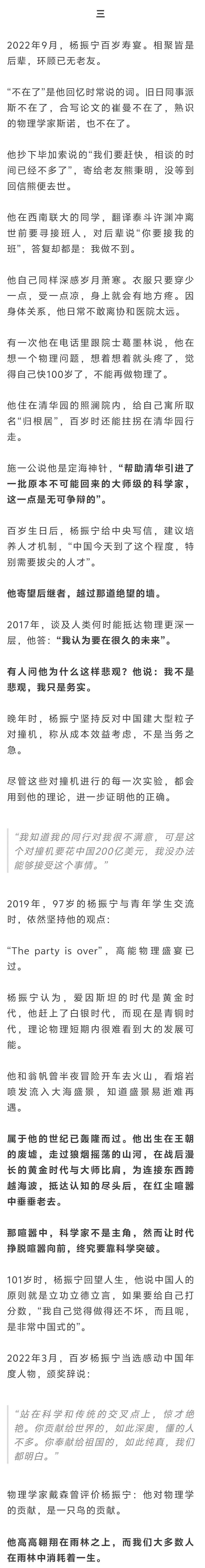 一年前,拍他的纪录片在中关村首映,片中,美国物理泰斗如是评价:杨振宁是继爱因斯坦、狄拉克之后20世纪物理学的卓越设计师。