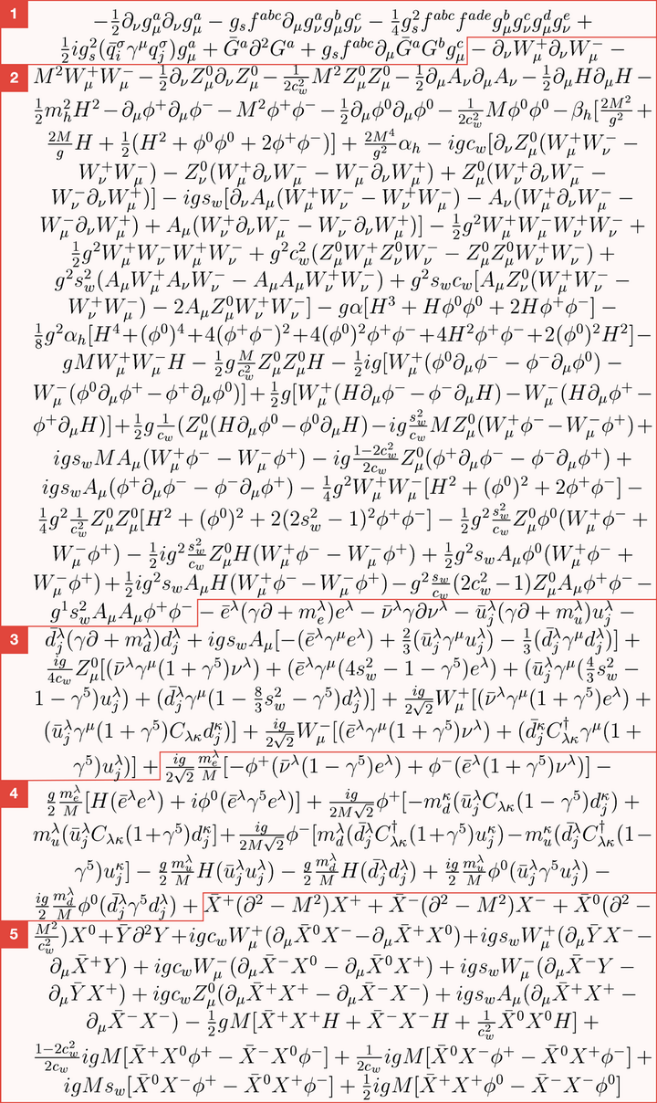 厉害归厉害,不得不吐槽标准模型的公式不愧是世界第二丑公式: