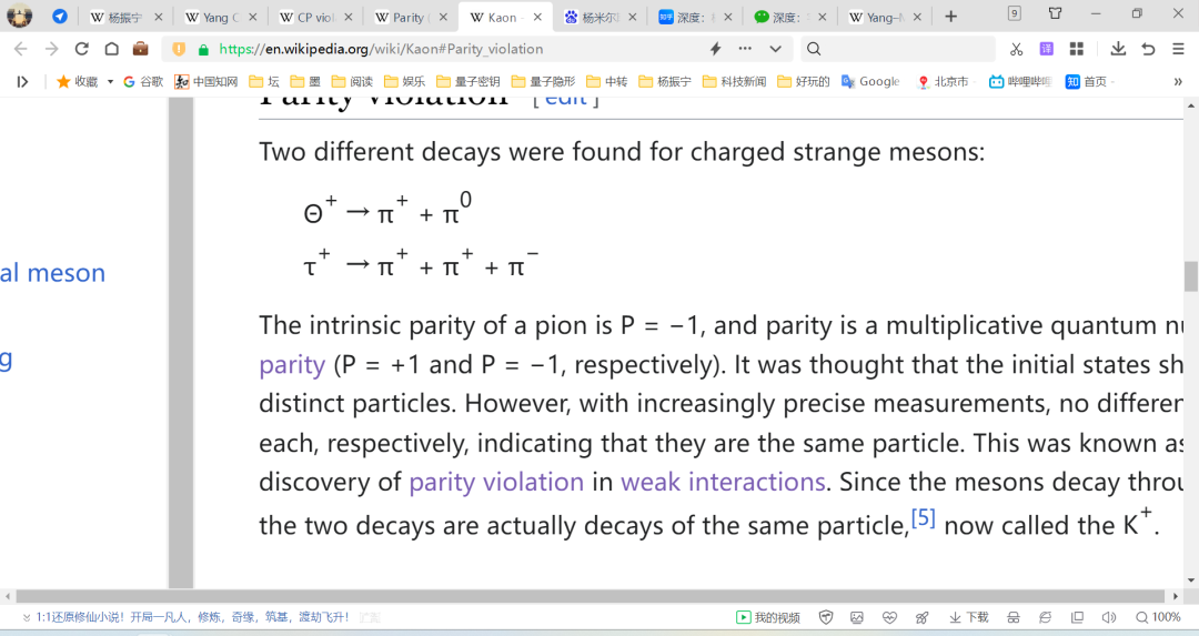也就是说我虽然可以从它们的衰变物回推出衰变前是θ还是τ粒子,但是我无法直接判断一个“k介子”在未来究竟是会衰变成两个粒子还是三个粒子。这也意味着“k介子”在空间上并非是对称的,这显然违反了当时科学家所坚信的宇称守恒。