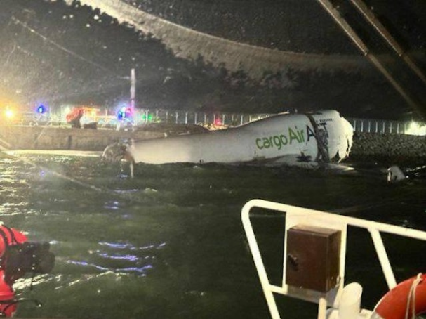 消息称,涉事货机有一半搁在岸上、部份跌落海面。现时北跑道全面封闭。据了解,事发后紧随EK9788降落的一架国泰CX851航机,须立即进行复飞,并改由南跑道降落。