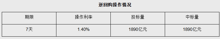【大河财立方消息】 10月20日,央行公告称,开展1890亿元7天期逆回购操作,投标量1890亿元,中标量1890亿元,操作利率为1.40%,与此前持平。今日有2538亿元逆回购到期,实现净回笼648亿元人民币。