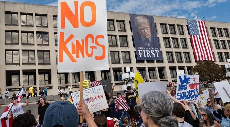 当地时间10月18日,首都华盛顿、纽约、芝加哥等美国多地再次举行“不要国王”(No Kings)抗议活动,表达对现任美国政府立法、移民、医保等方面政策的不满,参与人数达700万。