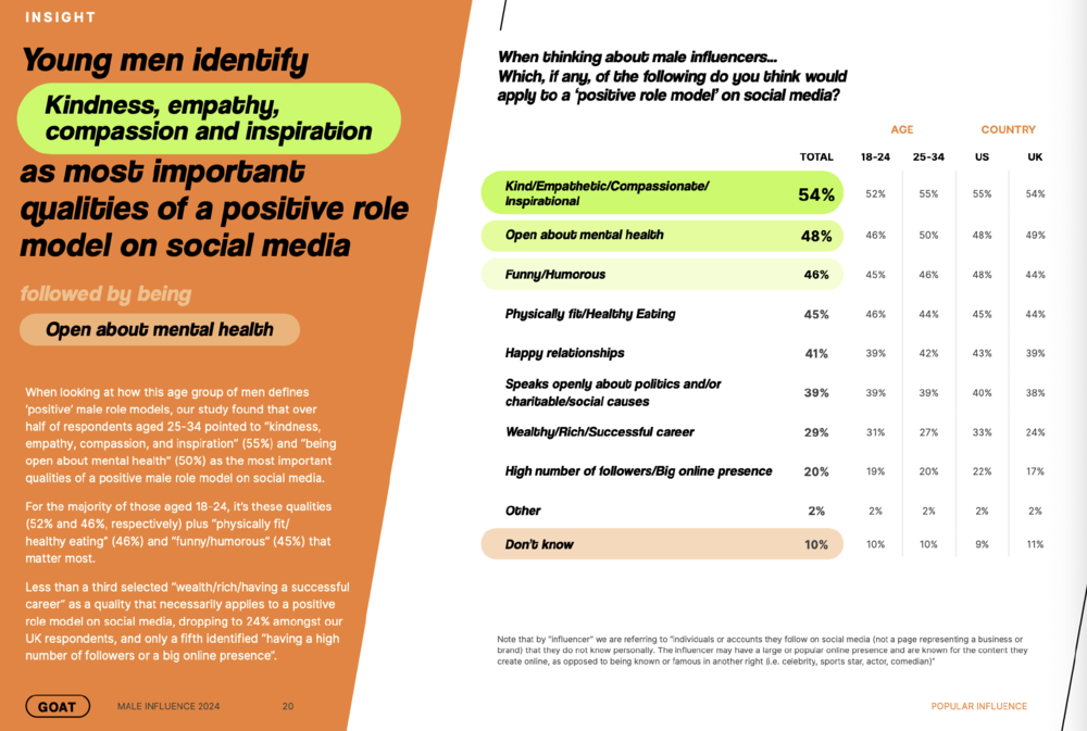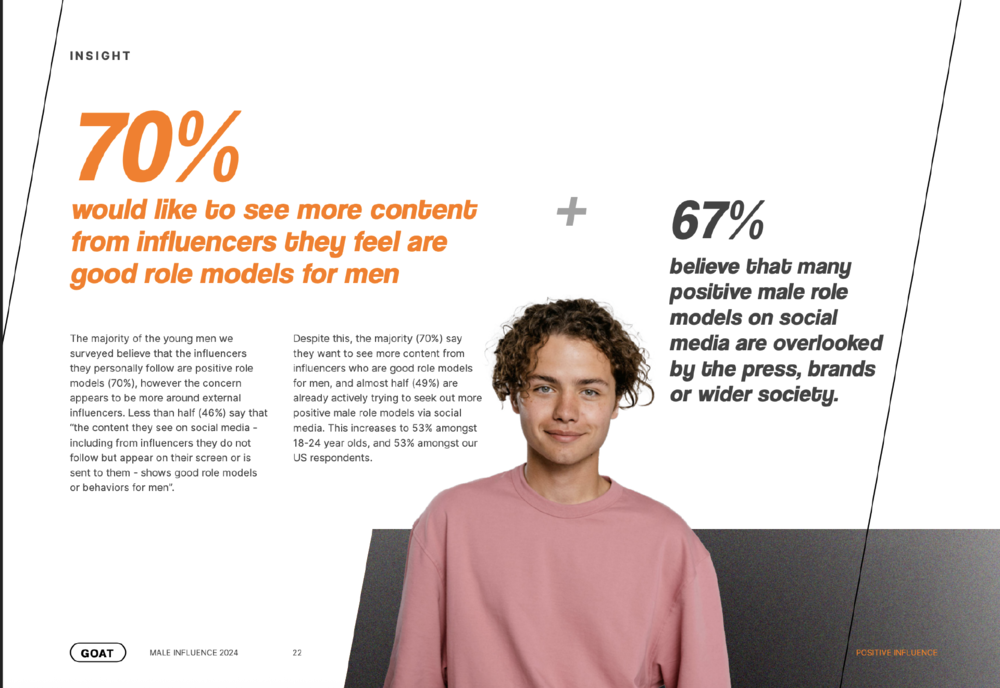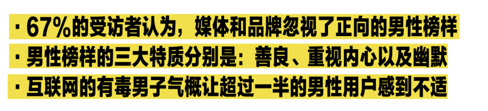 “70%的受访者希望在社交平台上看到更多男性榜样的内容,同时67%的受访者认为,现在很多正向男性榜样被媒体和品牌忽视了。”