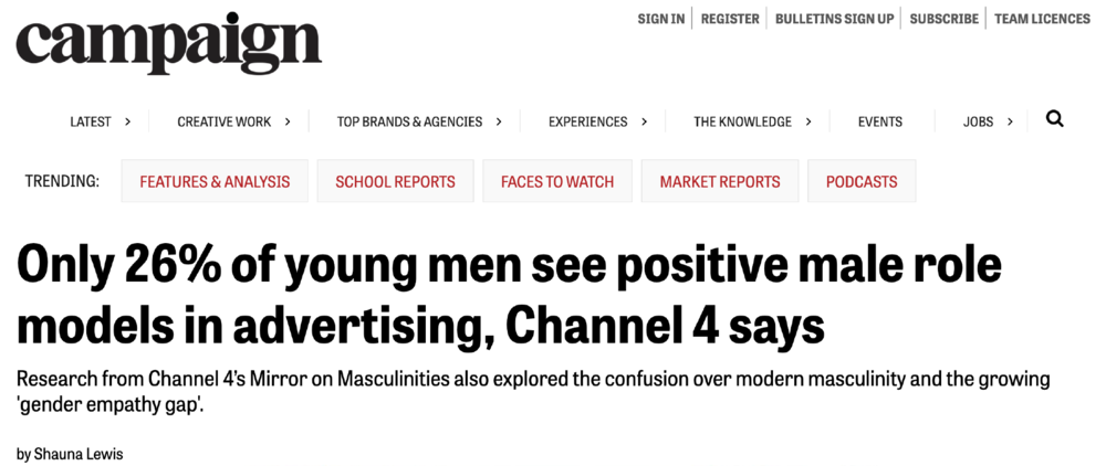 在媒体和机构看来,形塑一个健康的男性榜样的重要性,除了关乎商业,更有关未来。