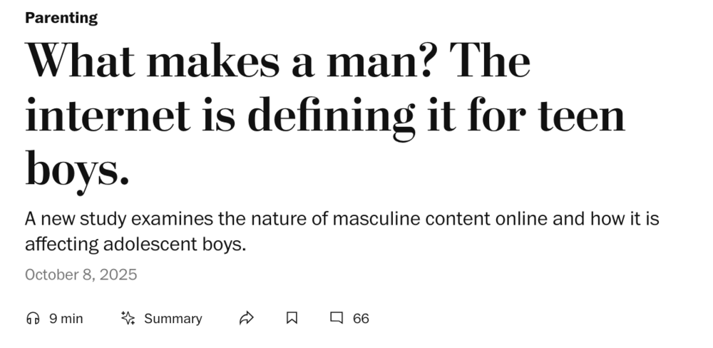 “...研究指出,网络网红已经成为青少年男孩获取指导和情感支持的重要来源——这是一个显著的世代转变,因为以往的几代人主要依赖亲属、社区成员或传统媒体来寻找男性榜样...”