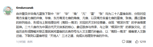那“井壁”、“井毕”和“角亢星张”的关系呢?“井壁”与“井毕”也是一个上升的时空观没问题,那“角亢星张”呢?我觉得不妥,“角亢星张”和“井毕”完全是一个并列的关系,虽然可以说“角亢星张”是比“井毕”的星宿多了,也可以解读为星域更广阔,但这纯粹就是堆砌,同样的东西硬凑一堆。