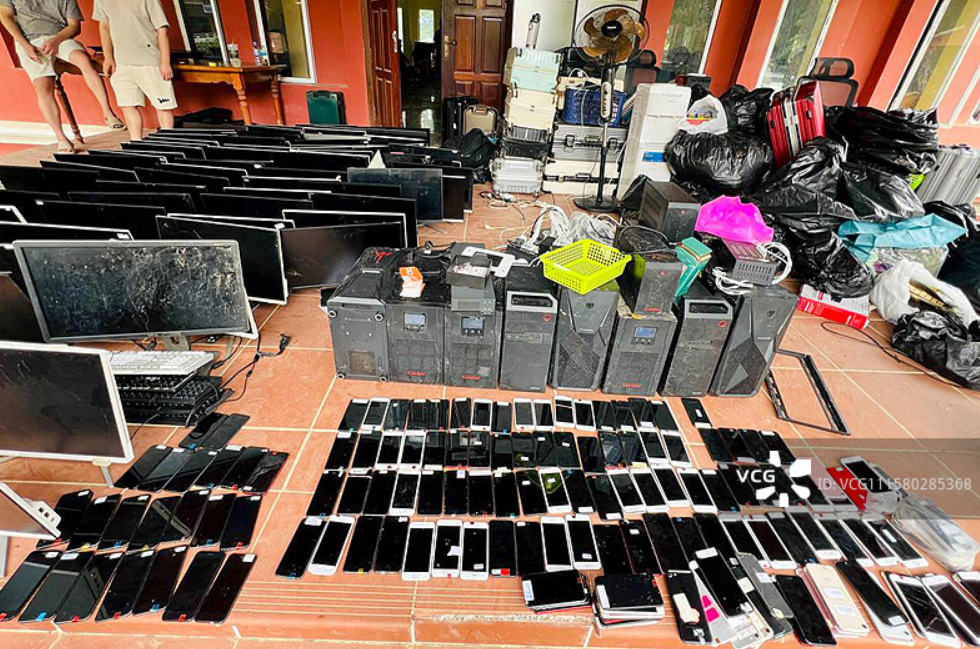 ▲柬埔寨警方查获的电诈设备(图/CFP)