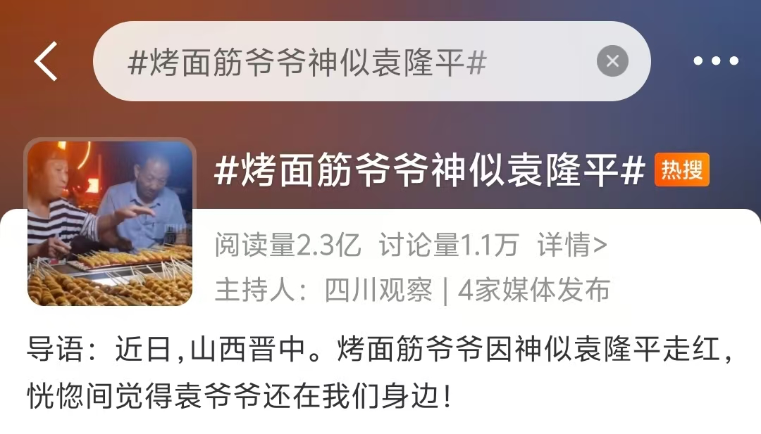 最新的例子,是今天登上热搜的「面筋爷爷」。