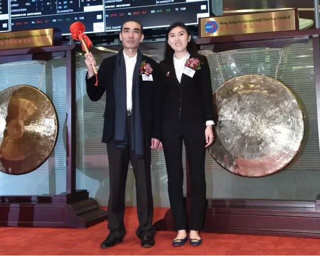 ● 许世辉和女儿许阳阳在港交所敲钟