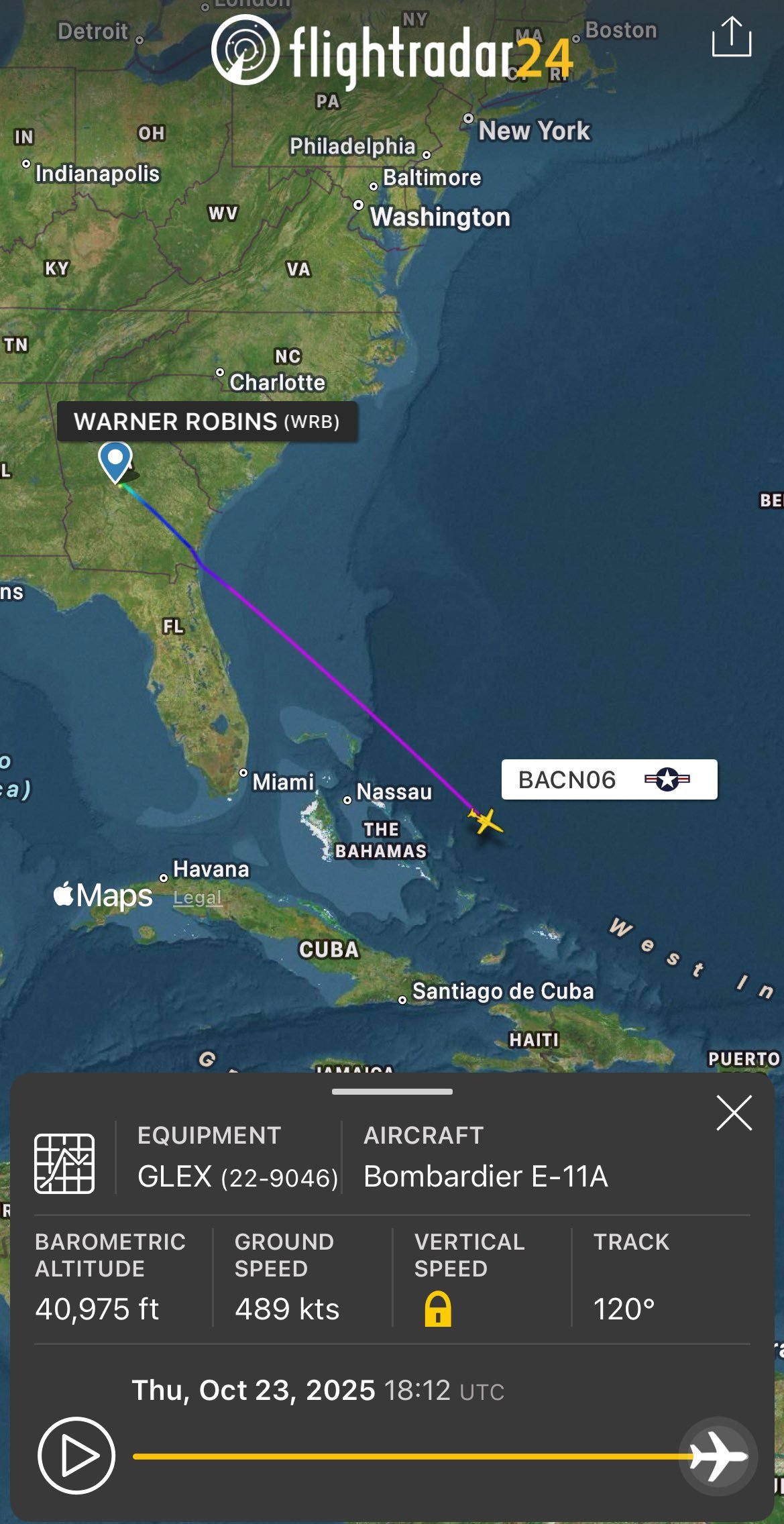 23日,一架E-11A通信中继飞机从佐治亚州飞往美属波多黎各